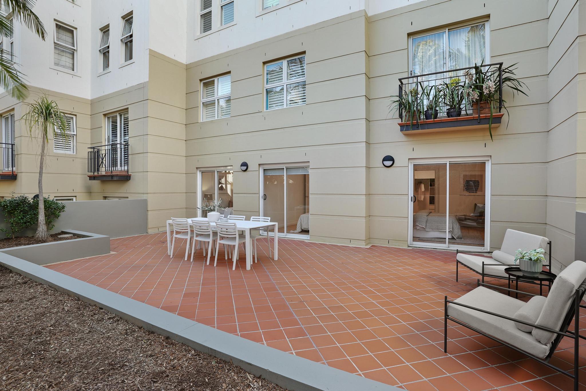 - Expansive Living: Enjoy generous open-plan living and dining areas that flow seamlessly to a sun-drenched north-facing courtyard, blending comfort and style. - Indoor-Outdoor Harmony: The living spaces extend to a covered north-facing courtyard with captivating distant water views, offering access to a rooftop garden with a sparkling swimming pool. - Luxurious Finishes: Revel in sophisticated details such as freshly polished hardwood timber flooring, contemporary downlights, custom blinds, and efficient ducted air-conditioning. - Gourmet Kitchen: Cook with elegance in your family-sized kitchen featuring stone benchtops, high-quality stainless steel appliances, and a versatile gas cooktop. - Elegant Bedrooms: Three spacious bedrooms each open onto a peaceful courtyard with garden views. The master suite includes built in wardrobes plus an additional walk-in wardrobe and luxurious en-suite bathroom for added privacy and comfort. - Exclusive Marina Berth: Enhance your lifestyle with a 12m exclusive marina berth, offering direct access to the water for boating enthusiasts. - Modern Conveniences: Benefit from a separate internal laundry, a large linen cupboard, and a tandem automated lock-up garage with ample storage space. - Resort-Style Amenities: Enjoy top-notch facilities including two outdoor swimming pools, a fully equipped gymnasium, and beautifully maintained communal areas. - Secure and Well-Maintained: The complex boasts well maintained interiors and exteriors, secure access, an intercom system, lift access, undercover visitor parking, new access ramps and a dedicated on-site manager. - Prime Location: Relish the convenience of being a short stroll from bus transport to Sydney CBD, with The Bay Run, local cafes, and restaurants just steps away. - Pet-Friendly: Your furry friends are welcome in this pet-friendly community.