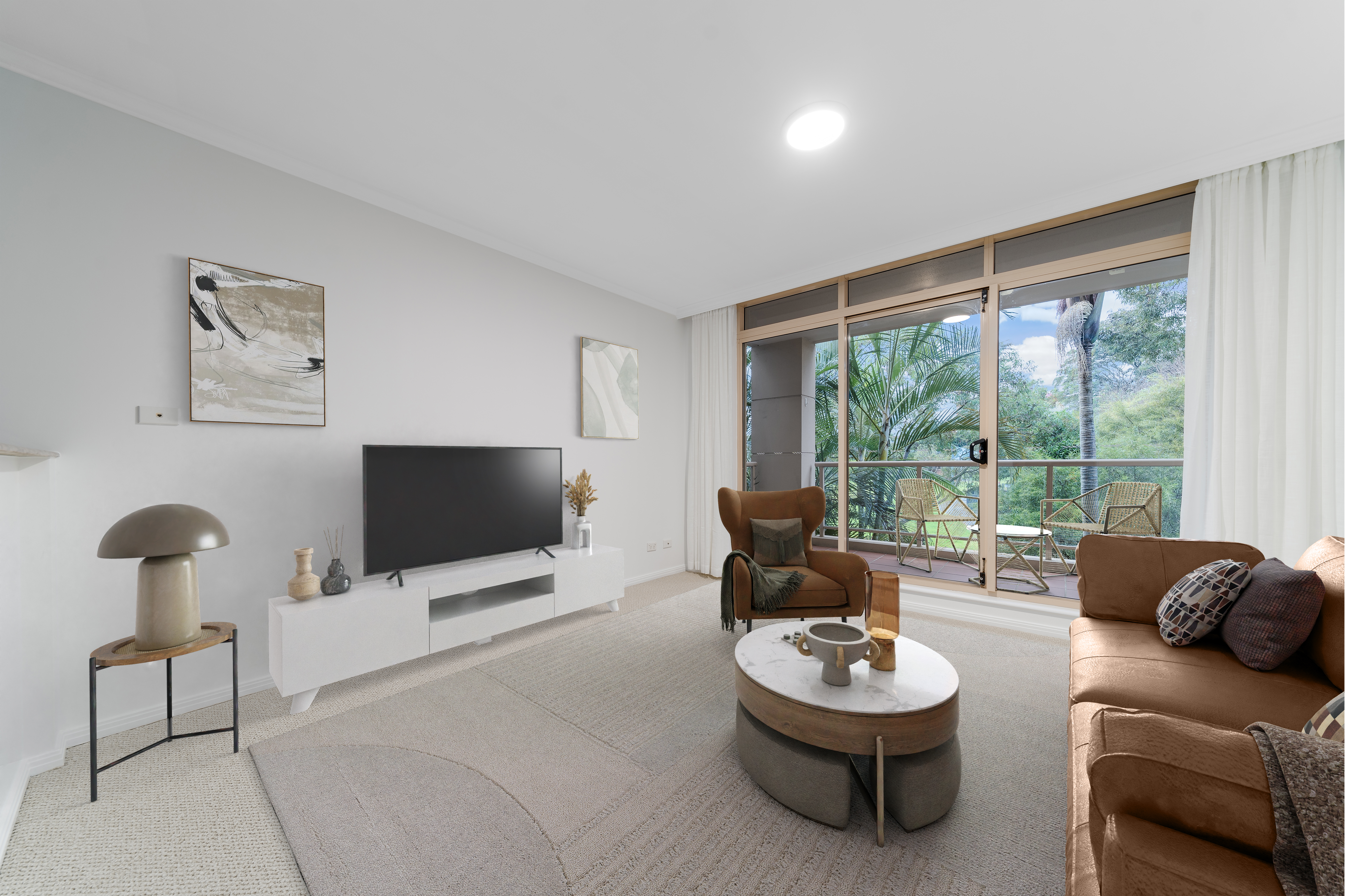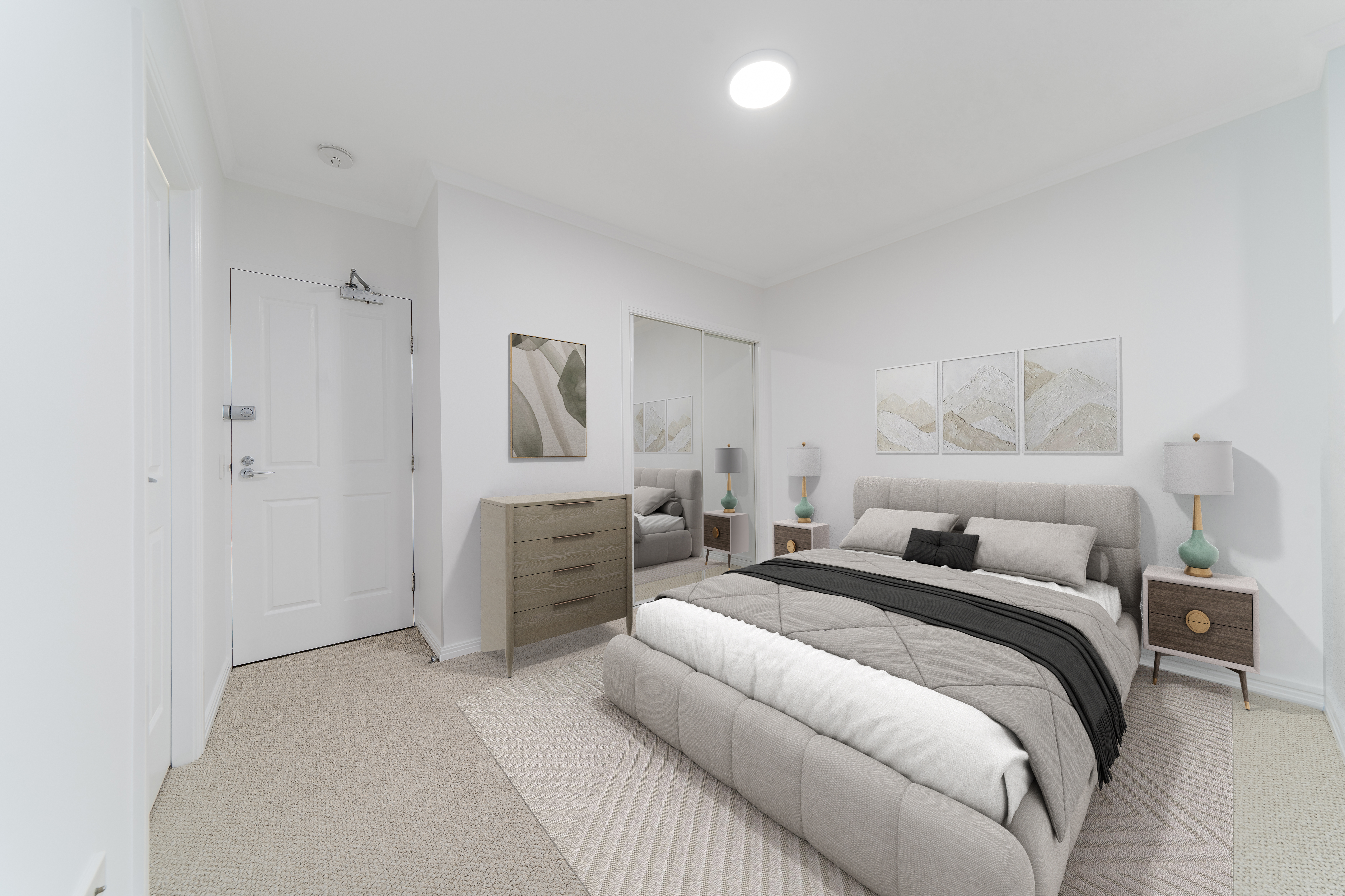 - Spacious open living area opens to a large undercover & elevated balcony enjoying views across Bridgewater Park to the water - Large bedroom area with mirrored built-in wardrobe