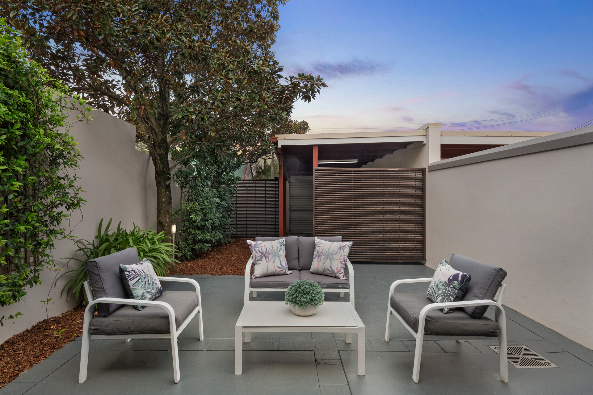 Light and airy living quarters features new timber flooring Generous paved backyard lined in peaceful greenery Modern kitchen has vast stone benches, gas appliances and meals bar Three large bedrooms, two have built-in robes Master retreat flows to wrap around balcony, ensuite and walk-in robe Flexible home office/studio adjoining ensuite Large glass shower and separate tub within main bathroom Rear parking in carport secured by garage door