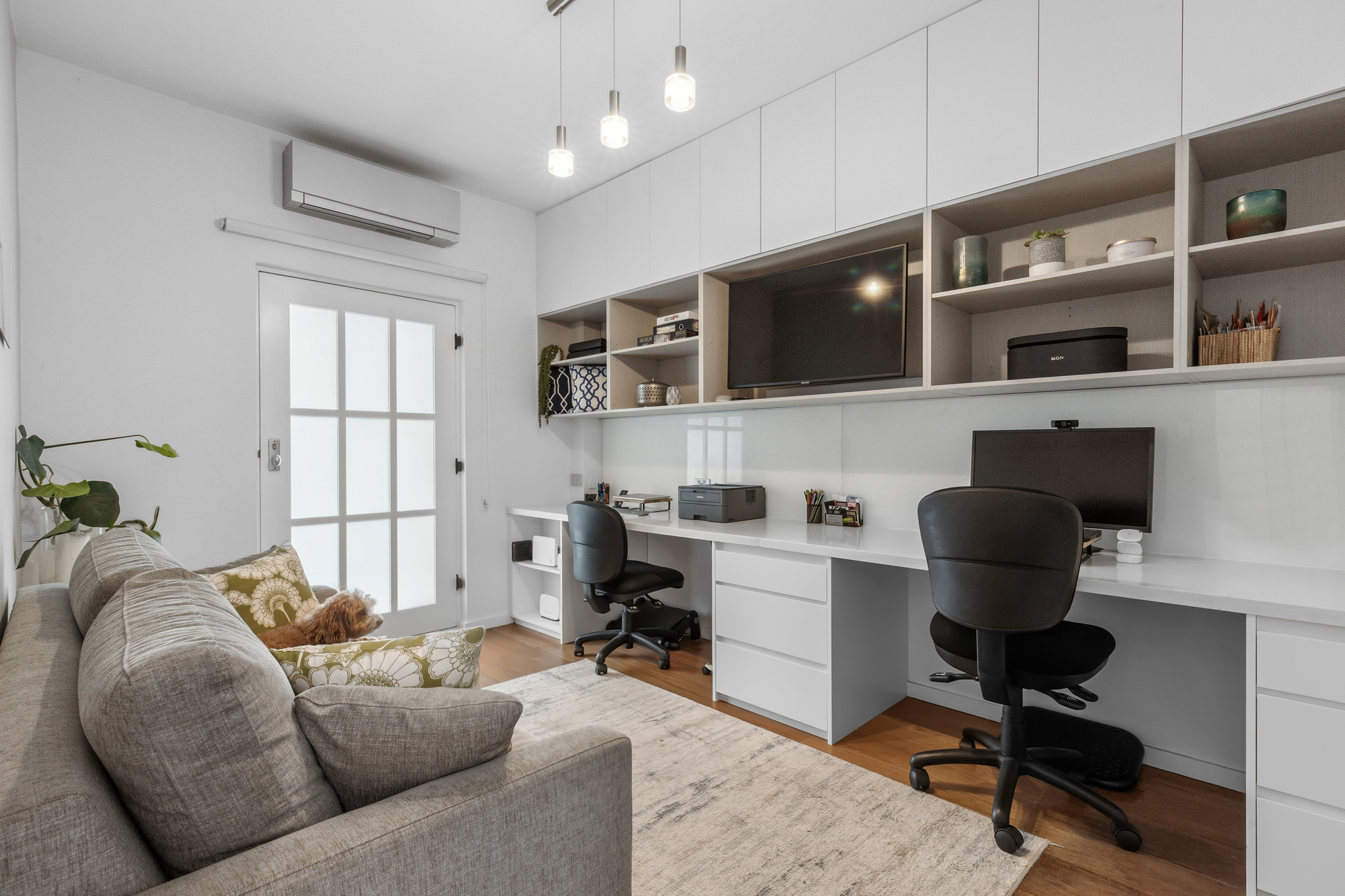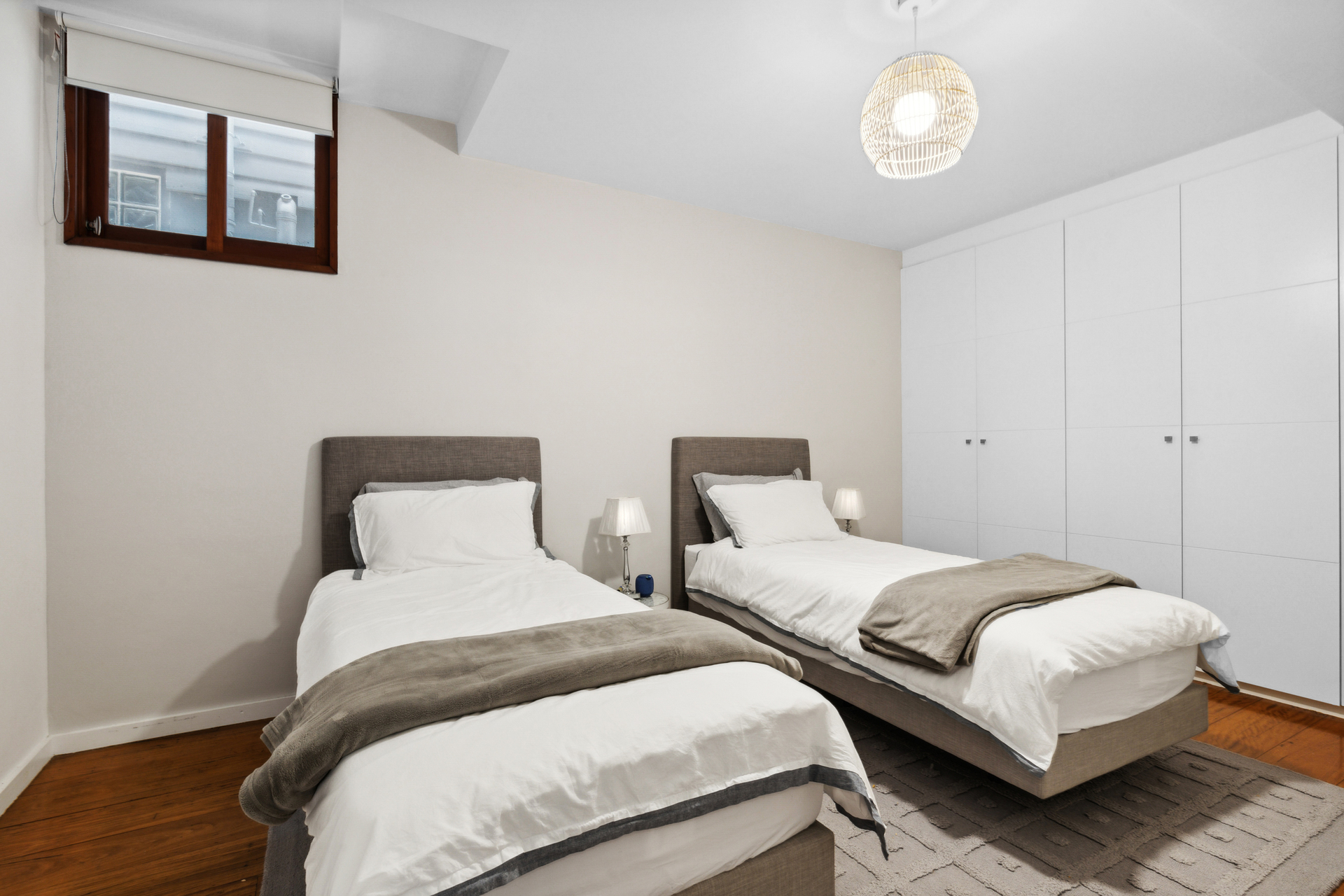 - Caesarstone kitchen offers gas cooking and quality appliances - Plush main and huge second bedroom with custom built-ins - Luxe bathroom offers dual rainfall showers and custom tap ware - Spacious ground level two-bedroom apartment with private entry - Apartment offers expansive living, kitchen and huge bathroom - Laundry, air conditioning, storage shed, artist studio/workshop - Walk to everywhere, Tottis and Red Lion Hotel, CBD buses