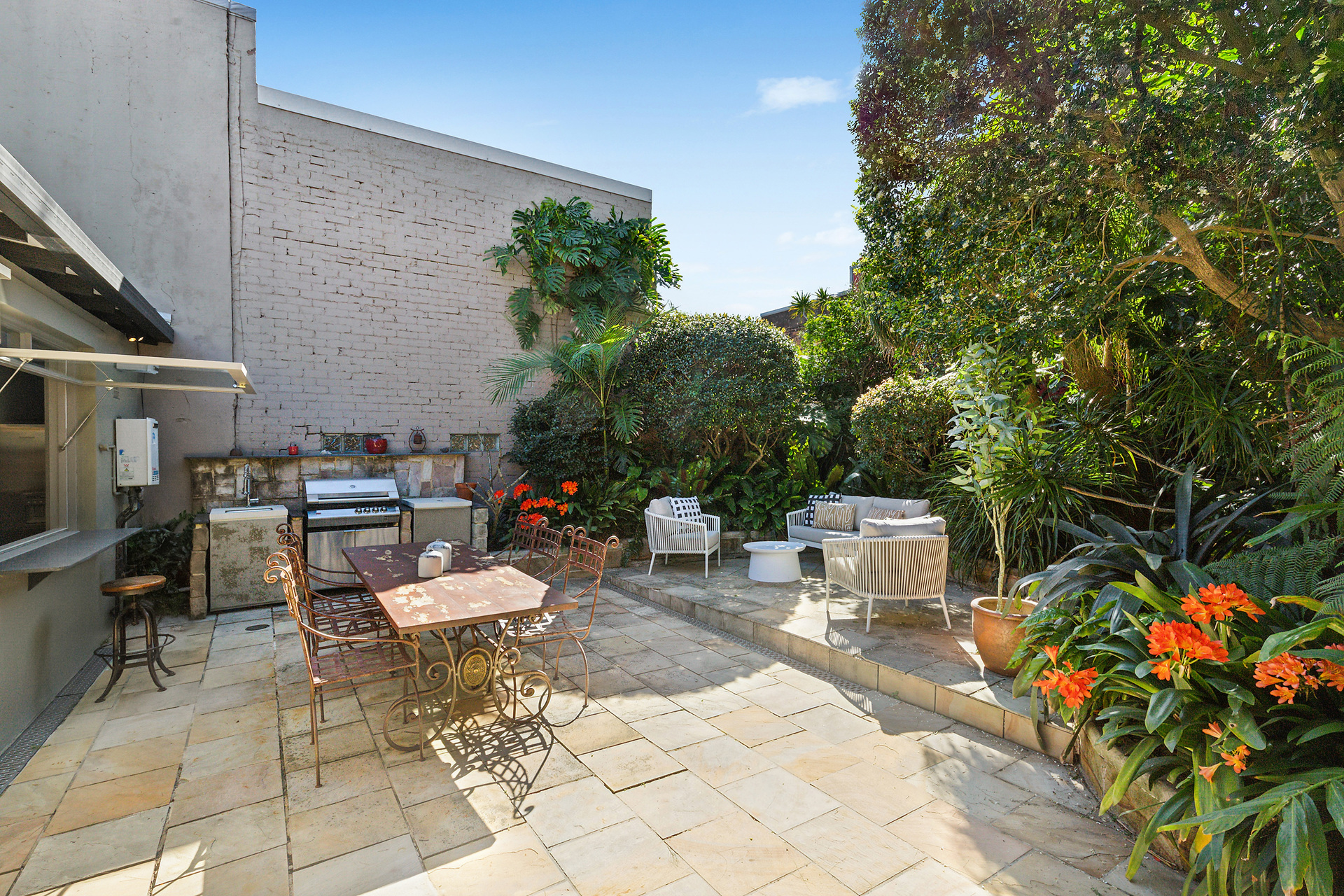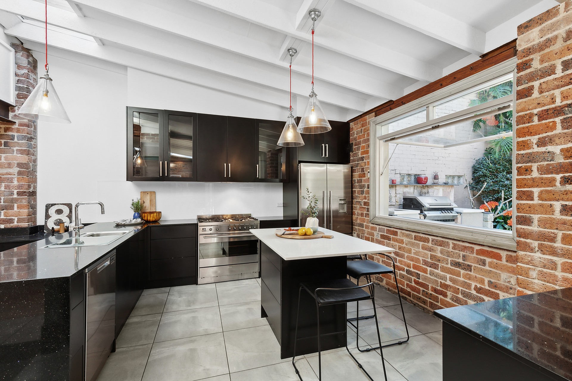 - Huge magnificent garden and sandstone entertainers' terrace - Distinct sunken dining room off the gourmet granite kitchen - Kitchen has deluxe wide Smeg oven/cooktop, window to terrace - Generous bedrooms, third bedroom or work from home office - Dressing room, two stylish ensuites, one has freestanding tub - Striking timber floorboards, air conditioning and skylights - Footsteps to Dawn Bakery, White Bay Brewery and city buses