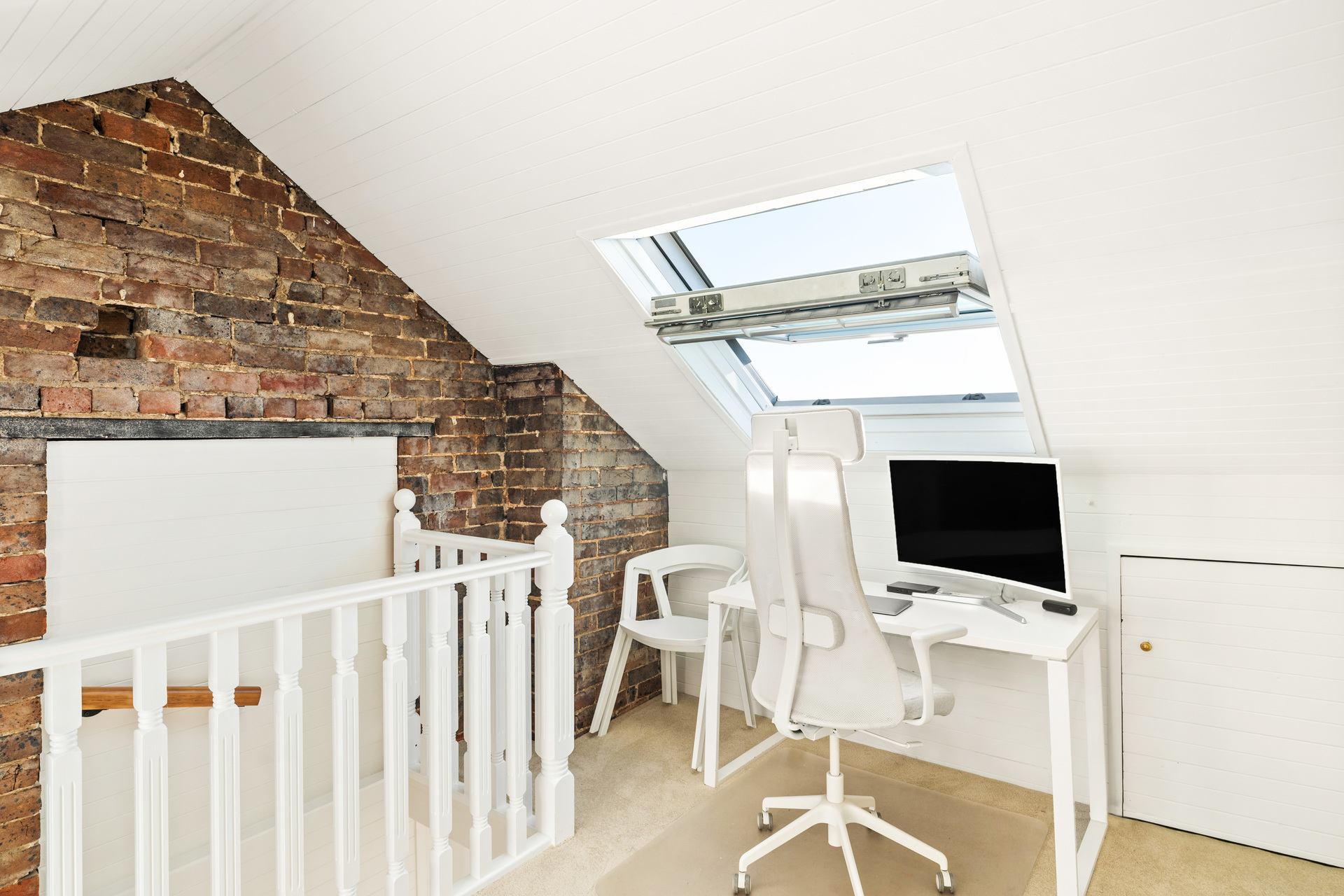 - Tranquil mews-style setting with a sandstone-walled forecourt - Two double bedrooms with built-ins, plus a lofty attic retreat/3rd bedroom - Flowing living and sitting areas featuring an original fireplace