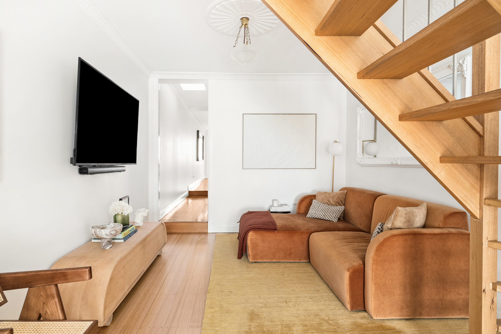 Charming 1880s Terrace in a Secluded Mews-Style Setting This beautifully preserved 1800s terrace masterfully combines historic allure with modern style, offering a warm and inviting atmosphere in the iconic York Buildings row. Nestled in a quiet laneway cul-de-sac just steps from Darling Street, this tri-level residence is one of the few homes in this serene village enclave. Its thoughtfully designed interiors and expansive decked courtyard make for a chic urban retreat, just around the corner from Rozelle village's vibrant heart. The attic retreat offers panoramic district views and glimpses of the water, enhancing the appeal of this two-bedroom gem with excellent walkability and city access.