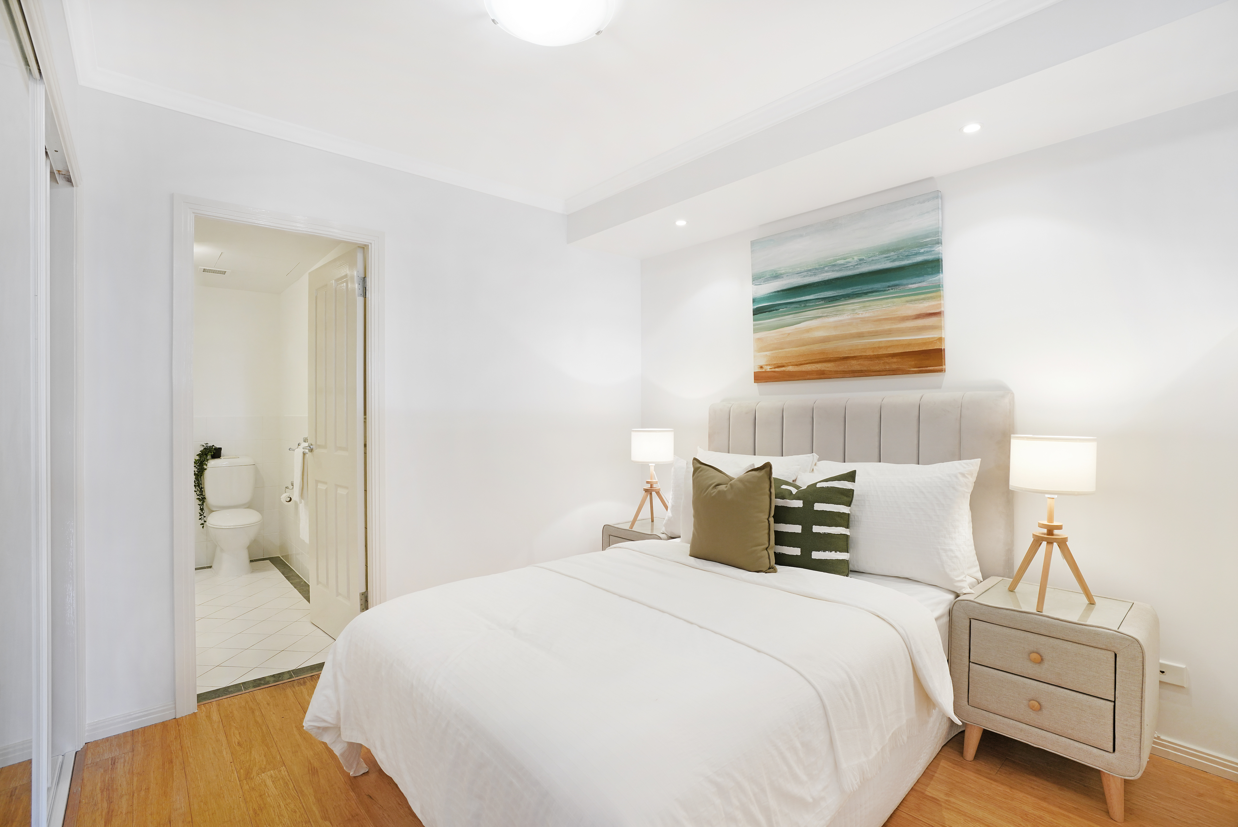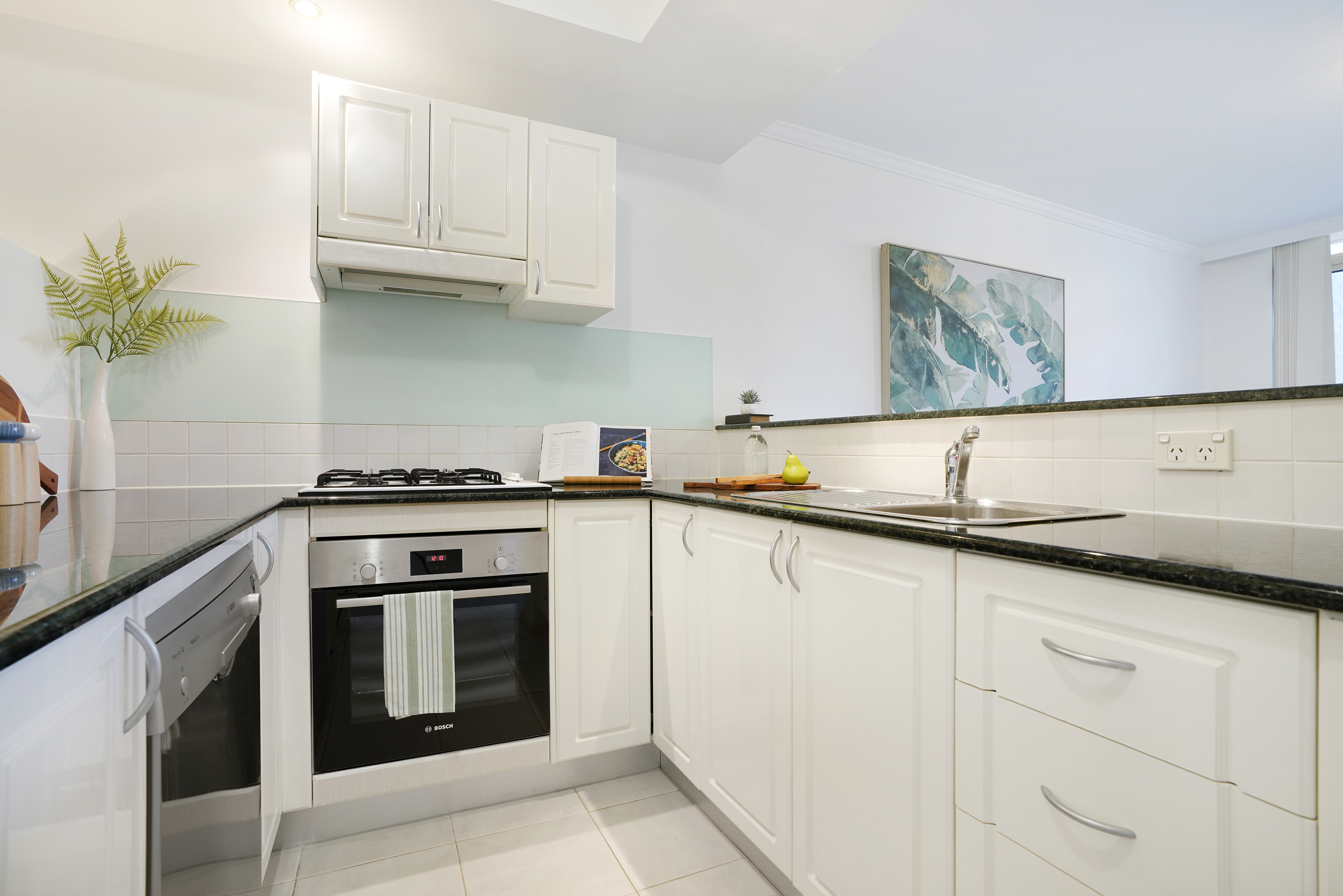 appliances • Bedroom area with mirrored built-in robe • Deluxe bathroom, integrated laundry • Polished floorboards throughout • Resort style amenities including fully equipped gym, heated indoor